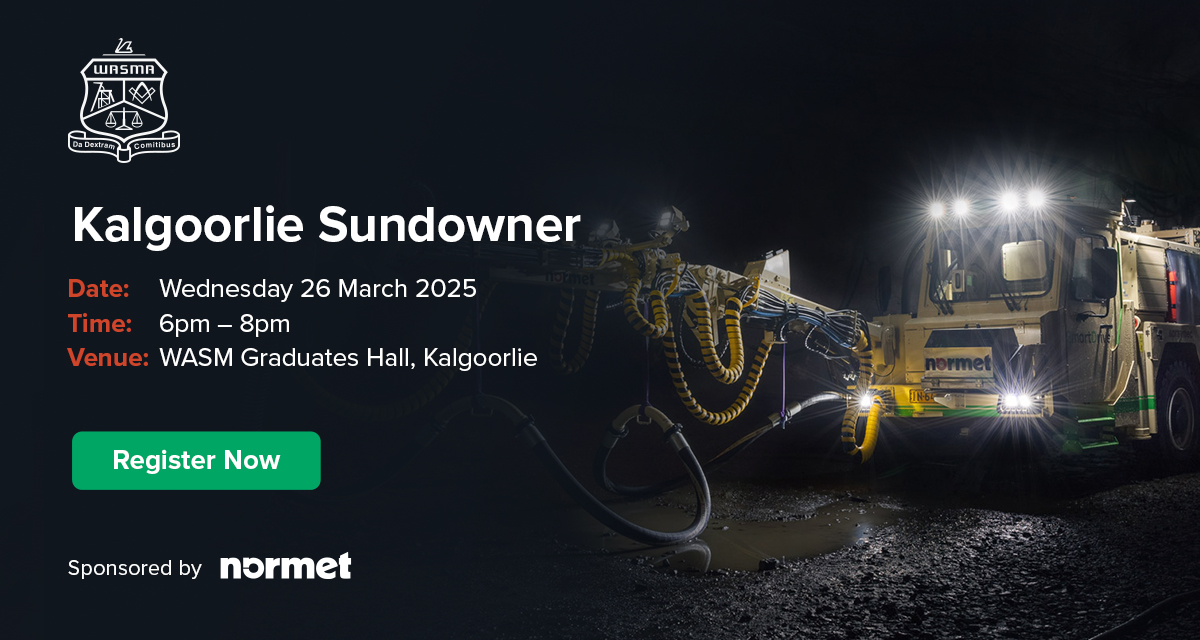 Join us for our first WASMA Kalgoorlie Sundowner for 2025! This event will be held at the WASM Graduates Hall (Kalgoorlie) from 6pm – 8pm on Wednesday, 26 March 2025. A big thank you to Normet for supporting this event.