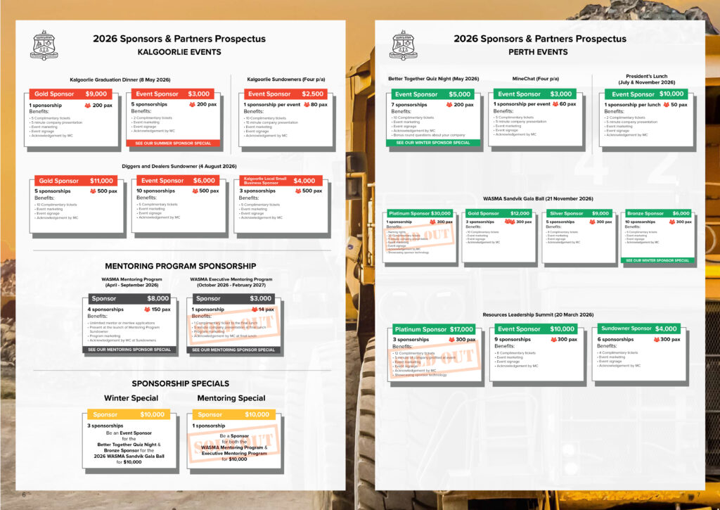 Power the next generation of mining and resources professionals by joining WASMA as a sponsor. Your sponsorship fuels programs that develop emerging leaders, strengthen industry connections and celebrate excellence across the sector.